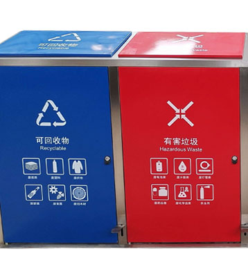 深圳新標(biāo)準(zhǔn)城中村街道社區(qū)不銹鋼五分類垃圾桶由有害垃圾、玻璃、金塑紙(為金屬、塑料、紙張的簡(jiǎn)稱)、廚余垃圾、其他垃圾這5分類不銹鋼垃圾桶組合而成。其中金塑紙、其他垃圾日常產(chǎn)生量較大,所以分類收集容器也
