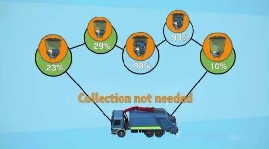 Enevo ONe作為一個(gè)基于超聲波傳感器的廢物回收系統(tǒng)。傳感器將收集到的垃圾箱和垃圾回收地的傳感數(shù)據(jù)通過低功耗的LoRa網(wǎng)絡(luò)傳輸?shù)綌?shù)千米外的LoRa基站,再傳送到服務(wù)器。通過分析這些數(shù)據(jù),垃圾管理者能更直觀的了解轄區(qū)內(nèi)各個(gè)垃圾桶的填充狀態(tài),并為清潔的車輛規(guī)劃最佳的回收路線,從而節(jié)省環(huán)衛(wèi)機(jī)構(gòu)的運(yùn)營(yíng)成本。