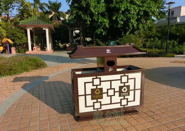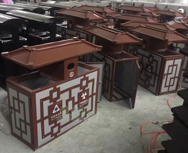 中國風(fēng)戶外鋼制分類垃圾桶工廠批量生產(chǎn)圖